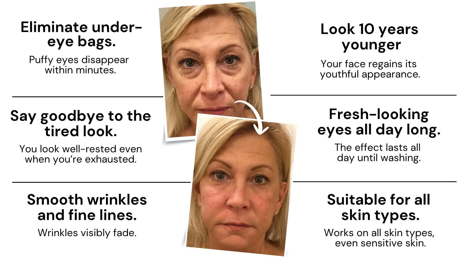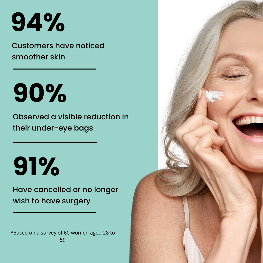 97% of users noticed a reduction in puffiness in just 3 minutes (clinical study conducted with 200 women aged from 25 to 70).