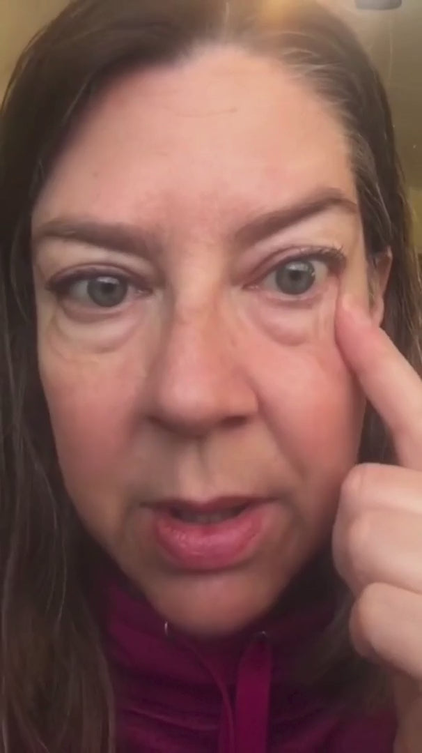 - To spread a thin layer of gel under the eyes, on crow’s feet, expression lines between the eyebrows (“11”), and under/above the brow bone (avoid the mobile eyelid).